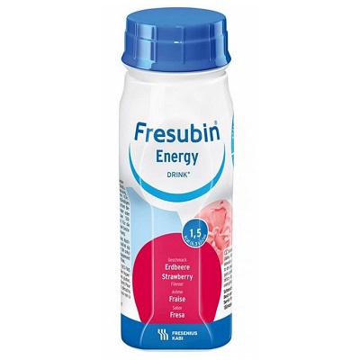 Fresubin Energy-Drink x4 Morango é um suplemento nutricional oral completo, hipercalórico (1,5 kcal/ml)- 300 kcal. Clinicamente isento de lactose. Isento de glúten e de fibra.