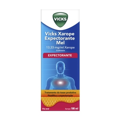 Vicks Xarope Expectorante Mel está indicado no alívio da tosse produtiva. Atua aumentando a expetoração do fluido do trato respiratório, reduzindo a viscosidade do muco. Esta ação pode ocorrer por um mecanismo sistémico ou tópico. O aumento do fluxo de secreções menos viscosas promove a movimentação ciliar e a redução do muco.
